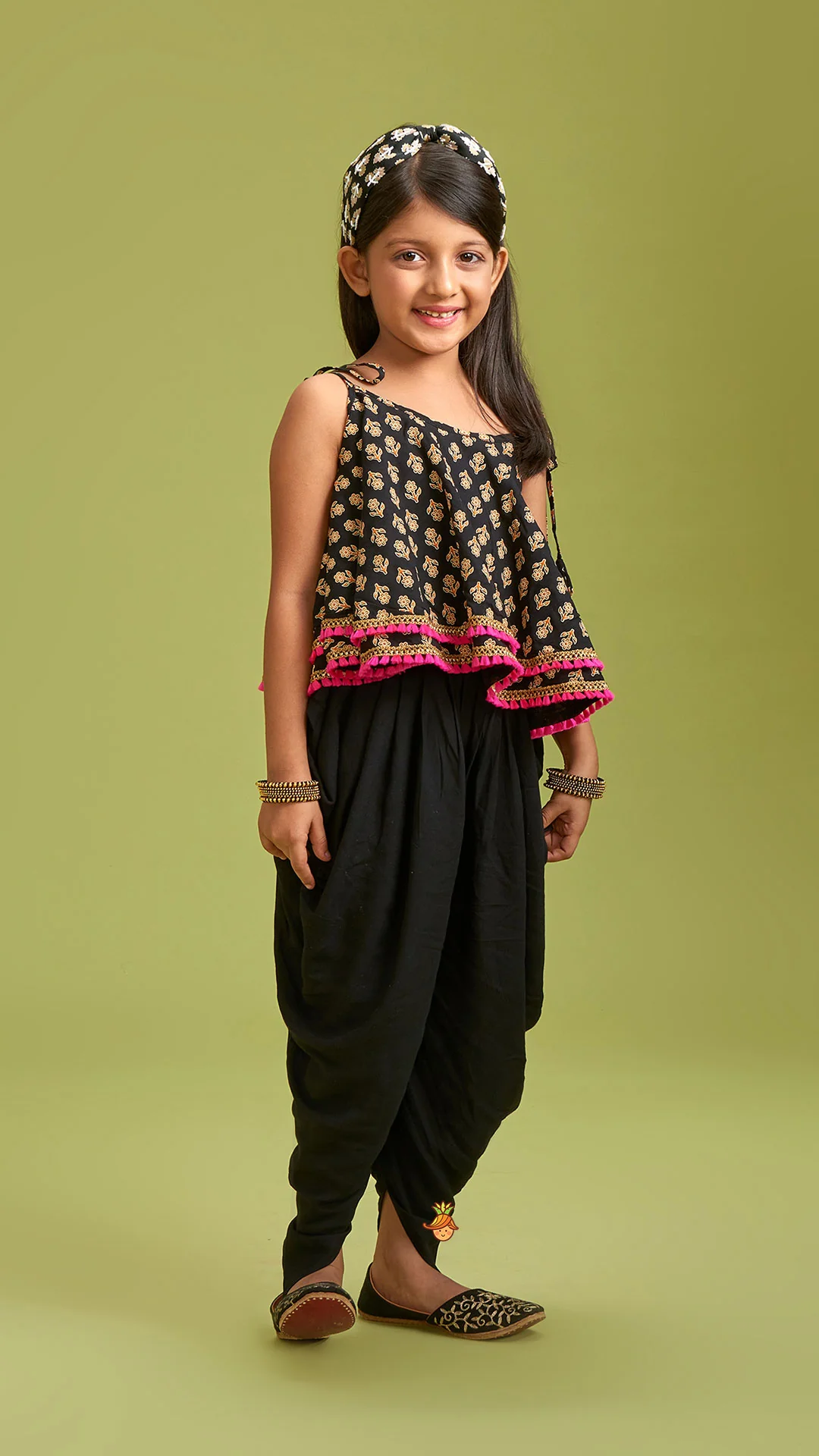 - Black dhoti with elastic at waist
