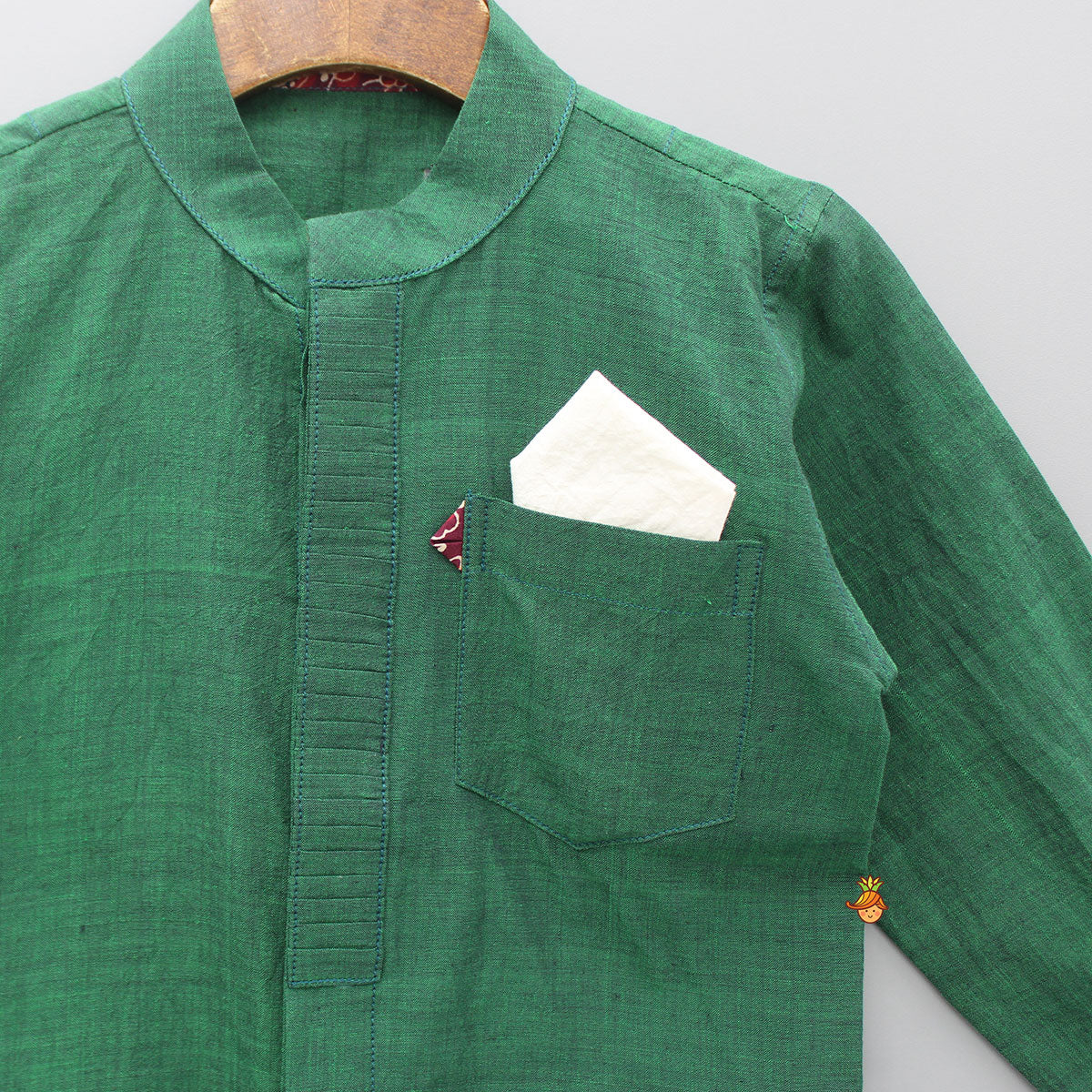 -70%Contrasting Pocket Square Detail Green Shirt—