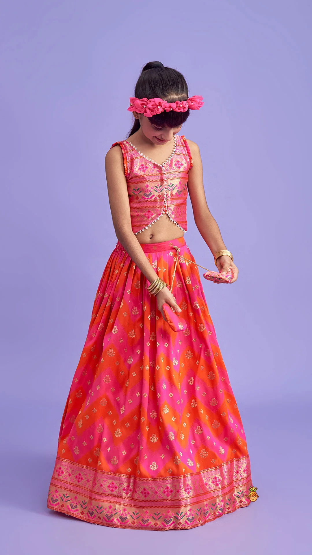 - Brocade Lehenga with a string at the front and matching sweetheart tassels attached to it