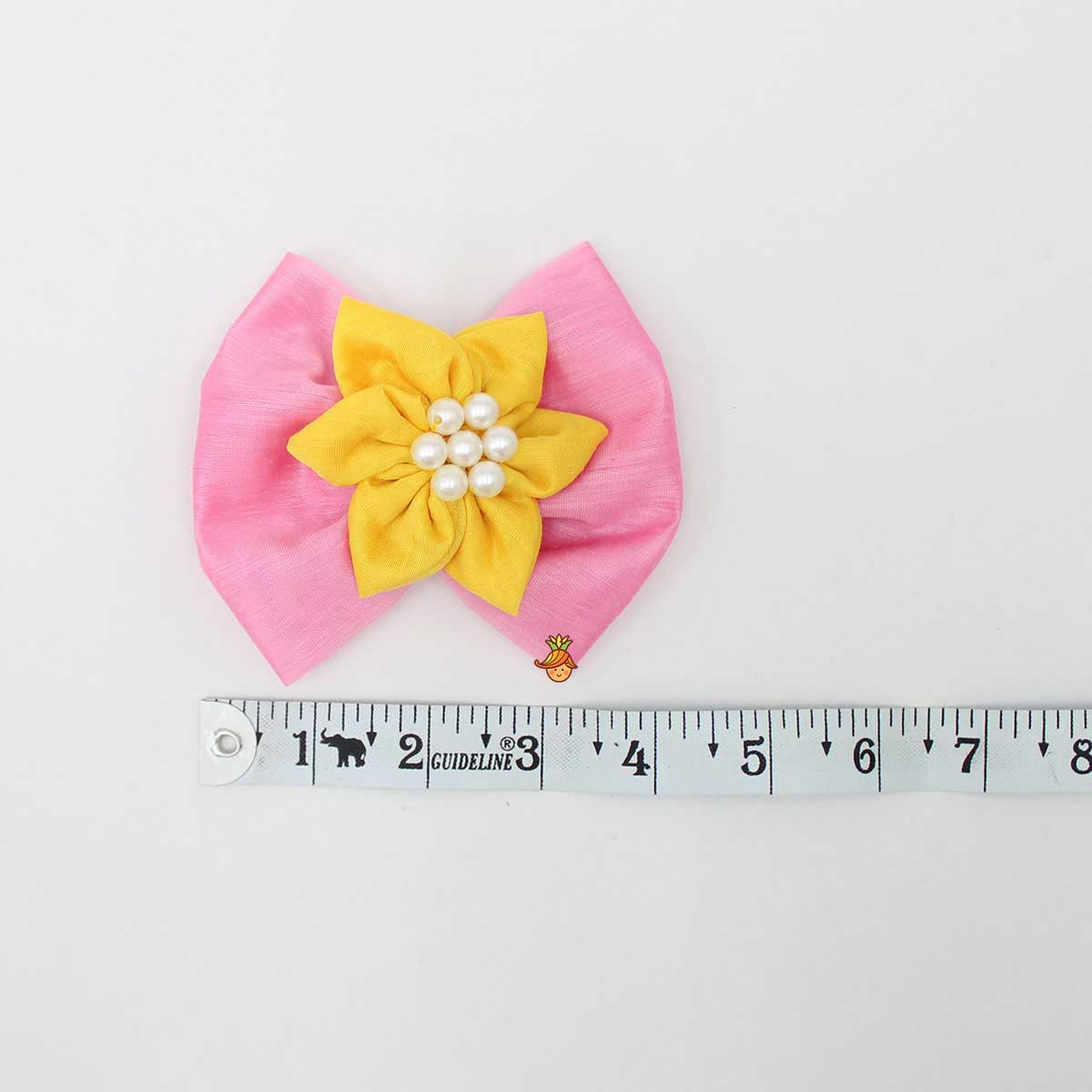 - Yellow and pink hair clip with pearly flower adornment