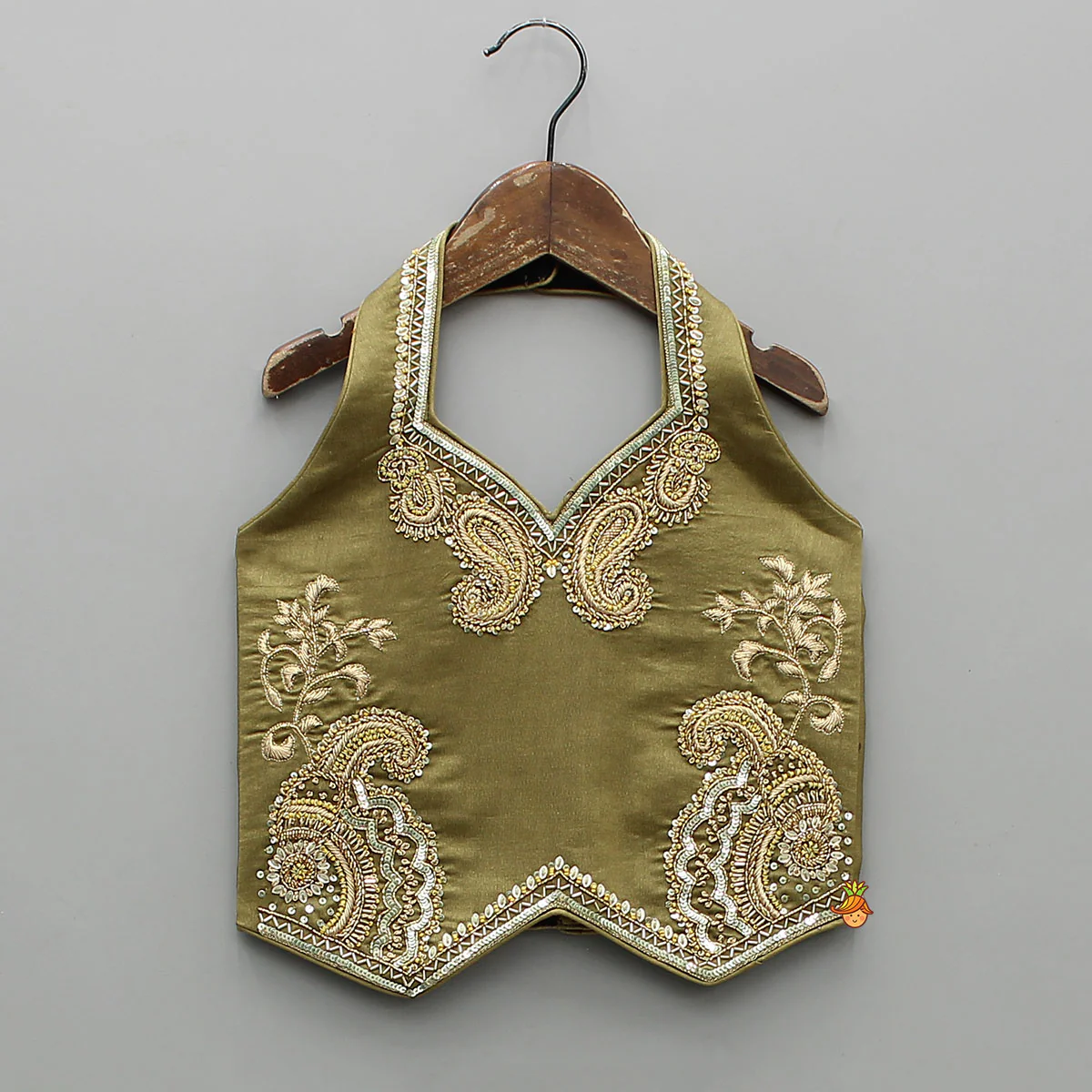 Halter Neck Paisley Embroidered Stylish Top With Brocade Lehenga