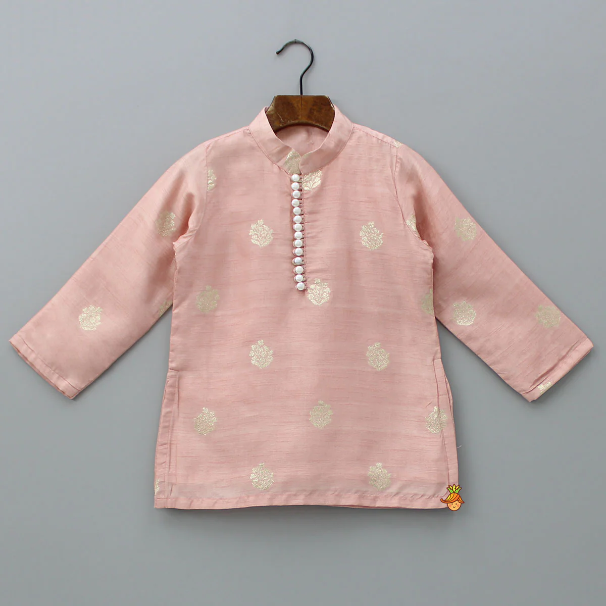 Peach Loop Buttons Detailed Kurta With Pyjama