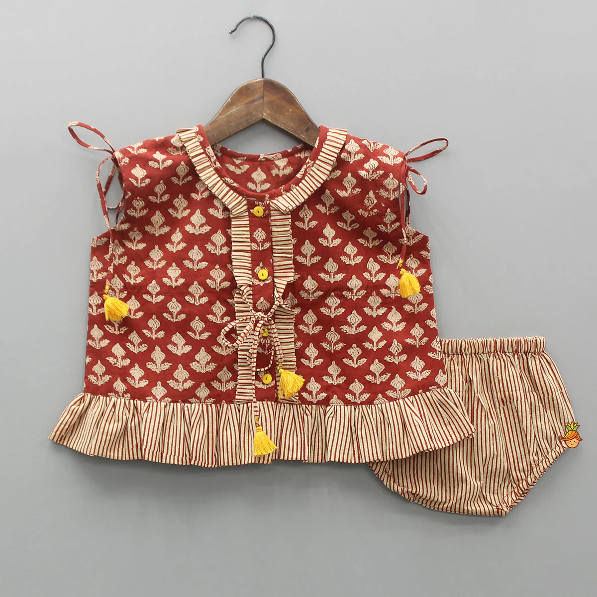 -70%Printed Jaamna Set With Matching Booties And Mittens—
